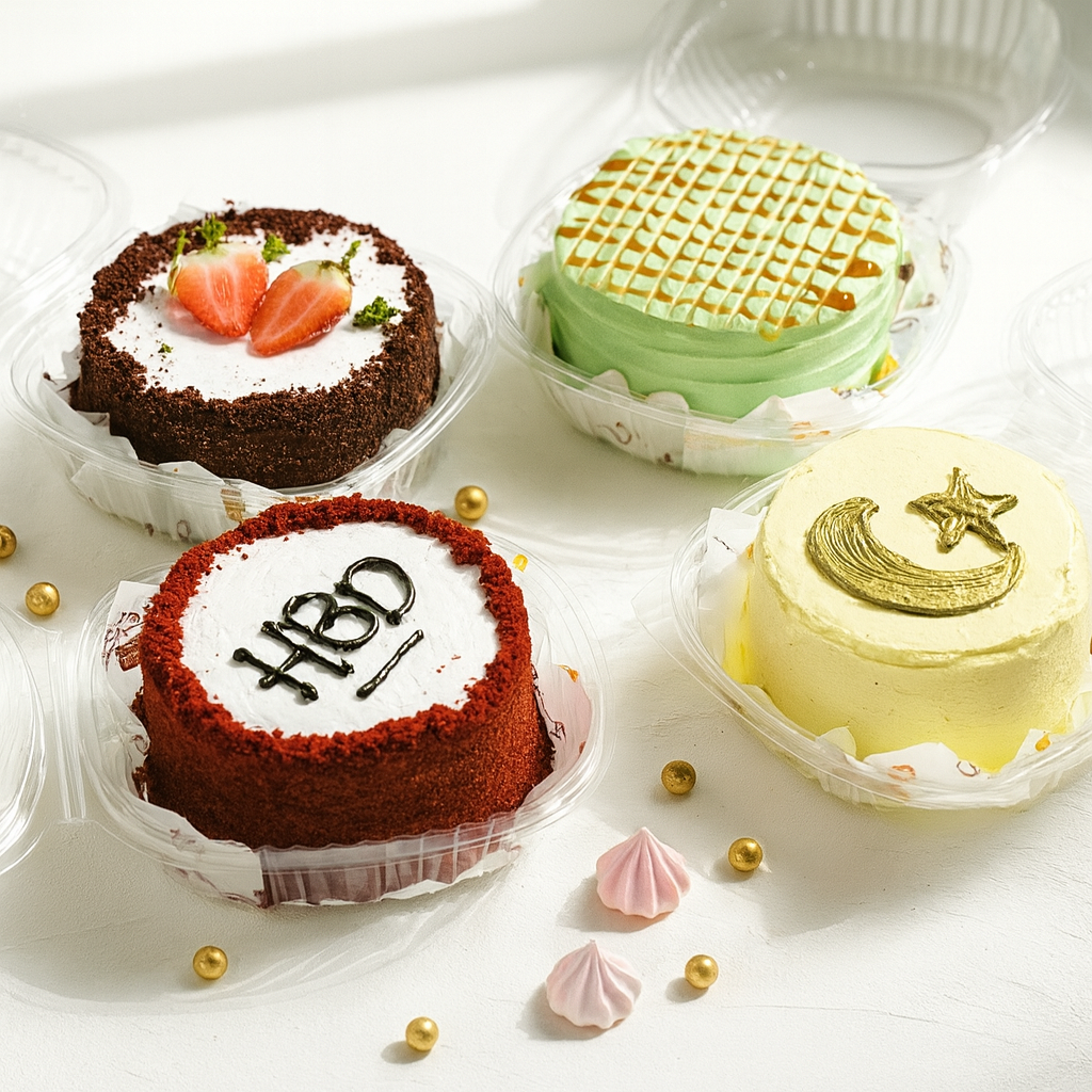 Enjoy our adorable 2-inch mini cakes, perfect for personal treats, party favors, and gift boxes. Each mini cake is freshly baked, beautifully decorated, and available in multiple stunning designs.